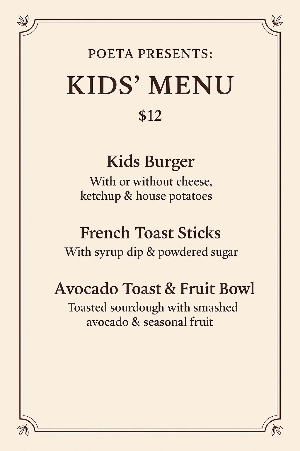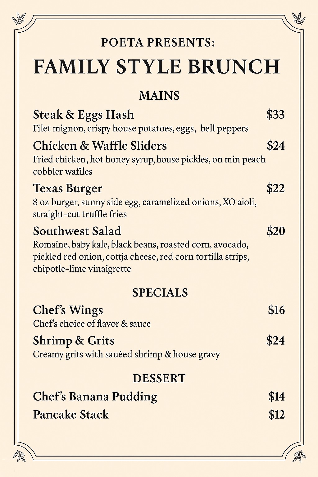 Brunch Menu Gallery