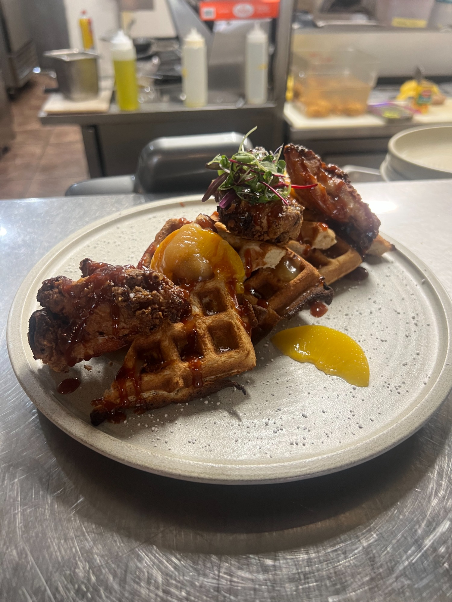 chef Blake brings an elegant twist of fusing cuisines to creating a mind-blowing extravaganza of taste from the seas to the dessert of phoenix. the compelling complex deliverance will have you sipping mimosa's, telling stories while trying to understand what flaviors you're tasting in evey bite.